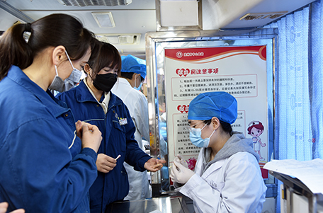 獻血隊伍中,既有工作多年的老同志,也有剛剛參加工作的新員工。獻血車就位后,員工在濱州市中心血站工作人員的指導下,認真填寫獻血登記表、測量血壓、抽血化驗,經血液檢驗合格后開始獻血。“我參加無償獻血的初衷,就是想盡自己的一點力量。”在場參與獻血的一名員工說到。簡單的一句話,展現的卻是充滿溫暖情感的無私之愛。