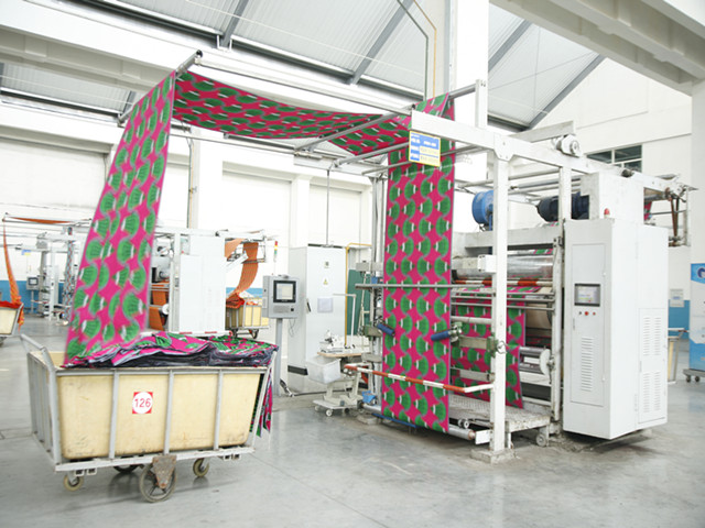 華紡股份有限公司花布公司是公司印染主導產業板塊的重要組成部分,集印花面料的設計、印制、后整及銷售于一體,擁有進口齊瑪20套色圓網印花機,由高效配套的水洗機、退漿機、雙面印花機、絲光機、蒸化機、拉幅機等裝備組成13條功能先進的印花生產線,輔以2條先進的自動調漿系統;采用CAD滑行設計處理系統和先進的蘭光制網機、噴蠟制網機等,可根據客戶及市場需求設計花型,并自主研發引領時尚潮流的新花型。年產能力12000萬米,產品綜合出口率達80%以上,其中純棉真蠟印花布、純棉仿蠟印花布等100%外銷出口。花布公司生產工藝先進、產品質量穩定,技術含量高、市場份額大,長期暢銷非洲等數十個國家和地區,其產品在非洲市場占有重要位置。
