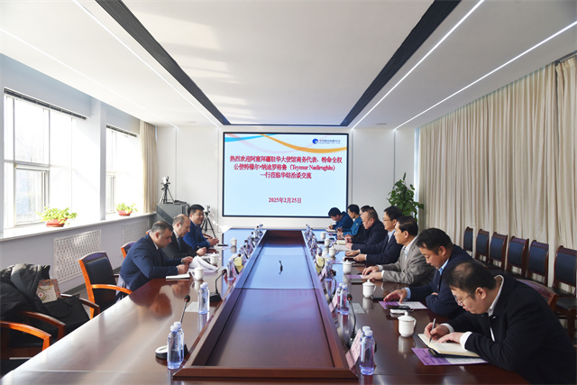 2月25日,阿塞拜疆共和國駐華大使館商務代表、特命全權公使特穆爾·納迪羅格魯,阿塞拜疆共和國駐華大使館商務代表、顧問伊和·阿塔里扎得一行到訪公司,就拓展合作領域進行洽談交流。中國國際經濟合作學會副會長、國際投資合作委員會主任王緯緯,中經聯合商貿總經理黃文廣,中經聯合商貿副總經理孝金龍參加交流。公司黨委書記、董事長盛守祥,黨委委員、副總經理孫中然,華紡國際分公司總經理石魯美接待。